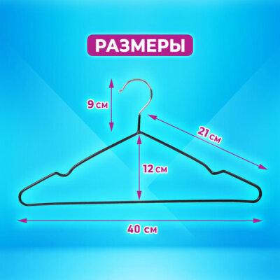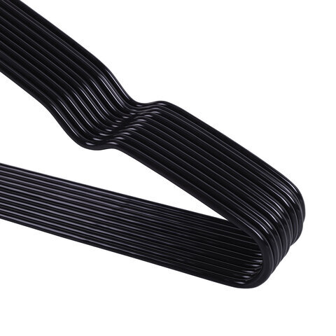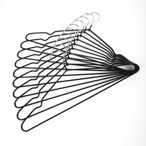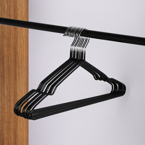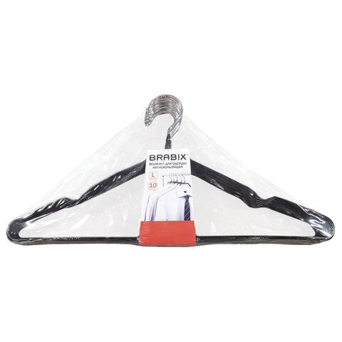 Набор из 10 прочных черных металлических вешалок BRABIX для одежды со специальным резиновым покрытием. Такое покрытие плечиков для одежды не дает одежде скользить по вешалке.