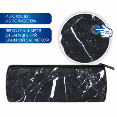 Пенал-тубус BRAUBERG, с эффектом Soft Touch, мягкий, "Black marble", 22х8 см, 271569