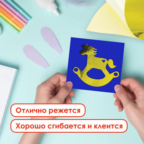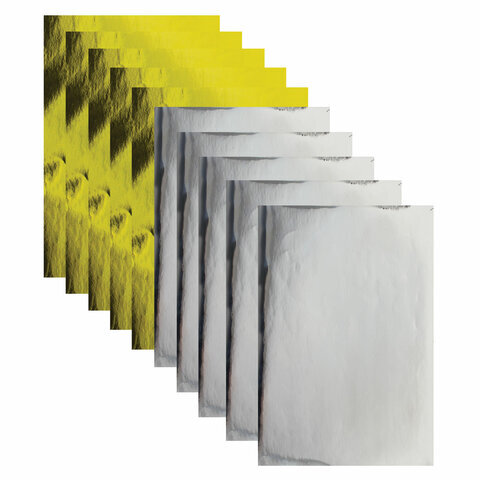 Цветная бумага, А4, мелованная САМОКЛЕЯЩАЯСЯ, 10 листов (5 золото+5 серебро), 80 г/м2, ОСТРОВ СОКРОВИЩ, 129291