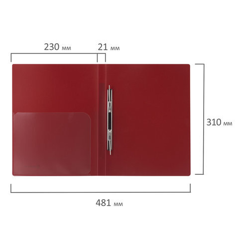 Папка с металлическим скоросшивателем и внутренним карманом BRAUBERG "Диагональ", темно-красная, до 100 листов, 0,6 мм, 221355