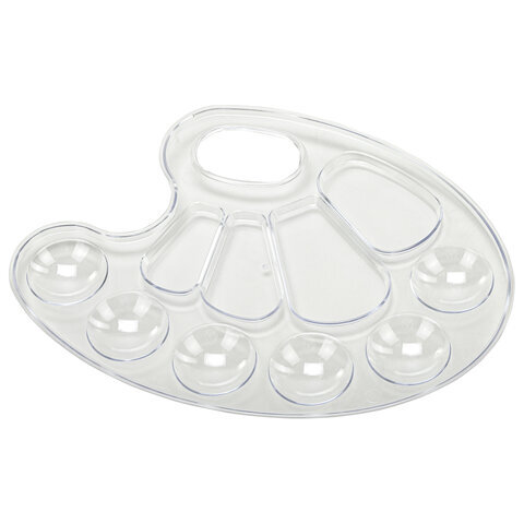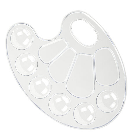 Палитра для рисования BRAUBERG KIDS, прозрачная, овальная, 10 ячеек (6 ячеек для красок и 4 для смешивания), европодвес, 192354