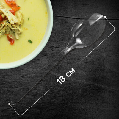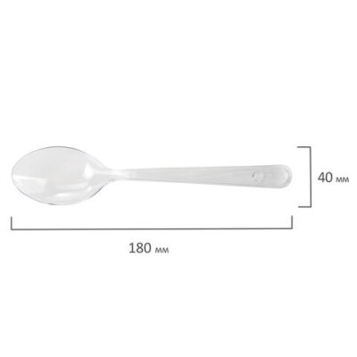 Ложка столовая одноразовая пластиковая 180 мм, прозрачная, КОМПЛЕКТ 48/50 шт., КРИСТАЛЛ, LAIMA, 602654