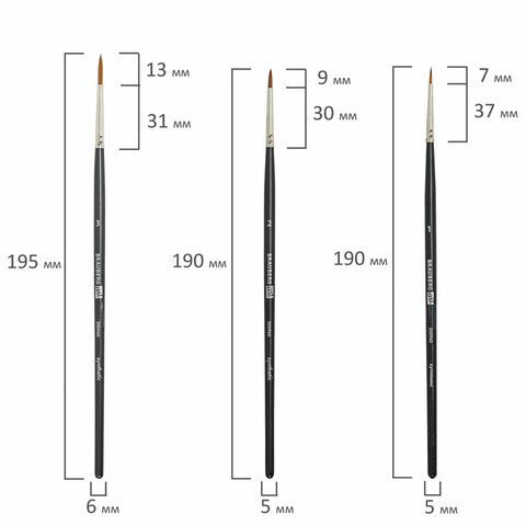 Кисти художественные набор 5 шт., синтетика, BRAUBERG ART CLASSIC, № 1-12, 200960