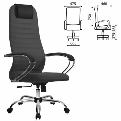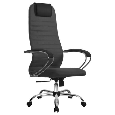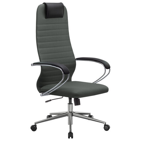 Кресло офисное МЕТТА "SU-B-10" хром, ткань-сетка, сиденье и спинка мягкие, темно-серое