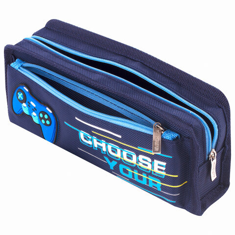 Пенал мягкий ЮНЛАНДИЯ, 2 отделения, полиэстер, "Joystick", синий, 21х6х9 см, 270274