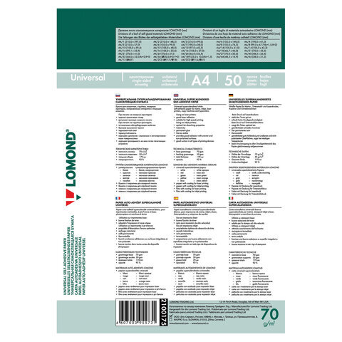 • Самоклеящиеся этикетки позволят быстро и качественно подготовить адресные наклейки, регистрационные номера, аннотации при помощи лазерного или струйного принтера.