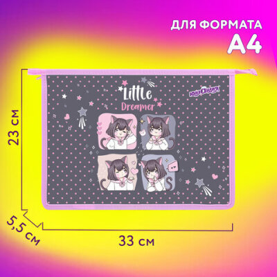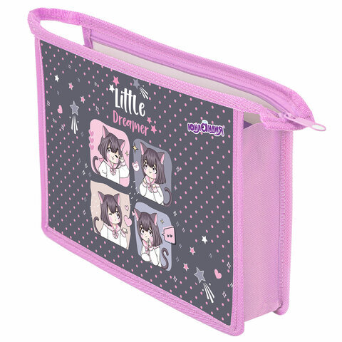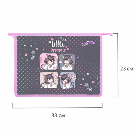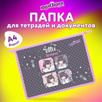 Папка для тетрадей ЮНЛАНДИЯ А4, 1 отделение, пластик, на молнии, "Anime dreamer", 273349