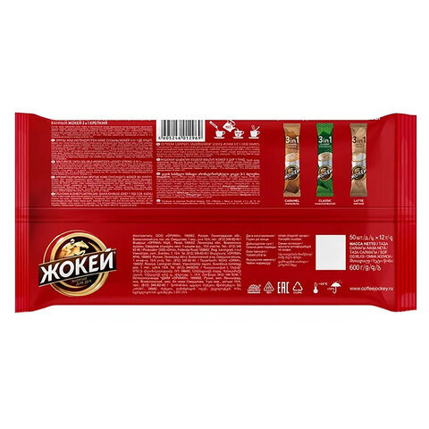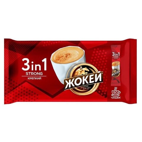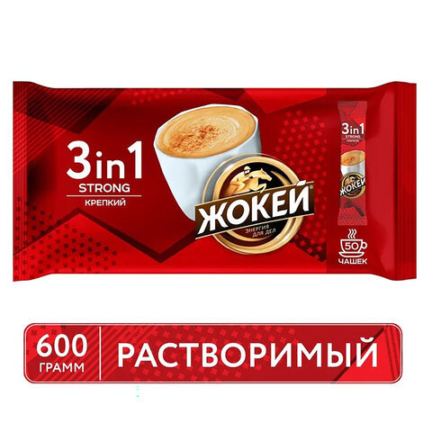 Кофе растворимый порционный ЖОКЕЙ "3 в 1 Крепкий", КОМПЛЕКТ 50 пакетиков по 12 г, 1296-08-2