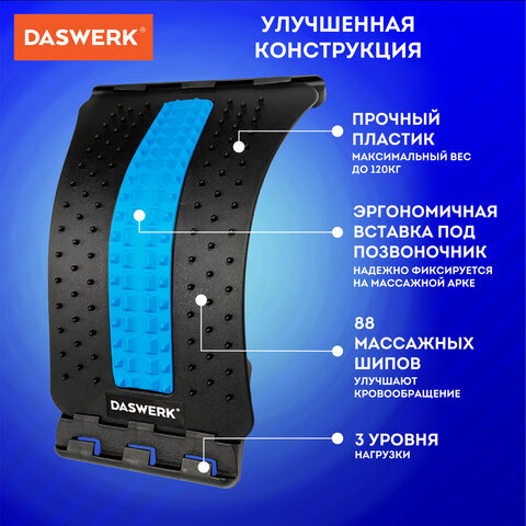 Массажер для спины/мостик для растяжки PREMIUM, 3 уровня нагрузки, синяя вставка, DASWERK (ДАСВЕРК), 680035