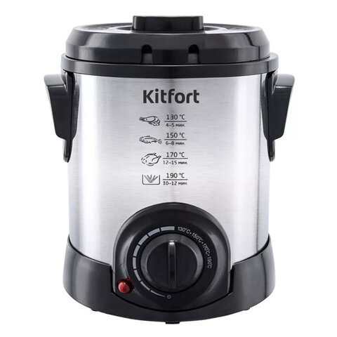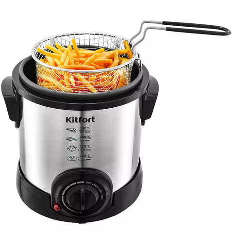 Фритюрница KITFORT KT-2009, 1000 Вт, объем 1 л, регулировка 130-190 °С, 1 корзинка, черная/серебристая, КТ-2009