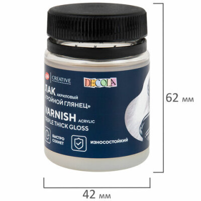 Акриловый лак "Тройной глянец" на водной основе используется для завершения работ, выполненных акриловыми красками. Часто применяется при росписи различных поверхностей.