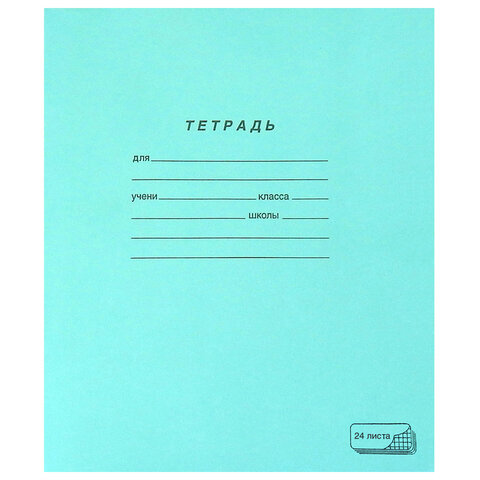 Тетрадь ЗЕЛЁНАЯ обложка 24 л., клетка с полями, офсет, "ПЗБМ", 19858