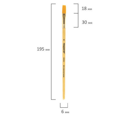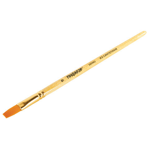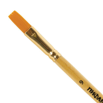 Кисть ПИФАГОР, СИНТЕТИКА, плоская, № 9, деревянная лакированная ручка, с колпачком, пакет с подвесом, 200862