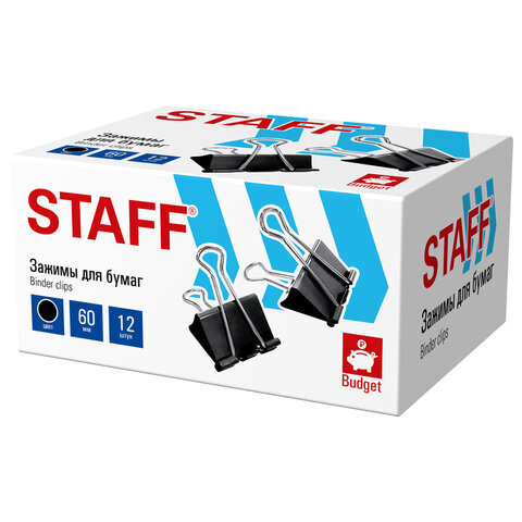 Зажимы для бумаг ПОВЫШЕННОЙ ВМЕСТИМОСТИ STAFF ECO, КОМПЛЕКТ 6 шт., 60 мм, на 280 листов, черные, картонная коробка, 274042