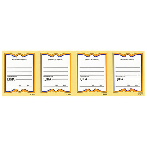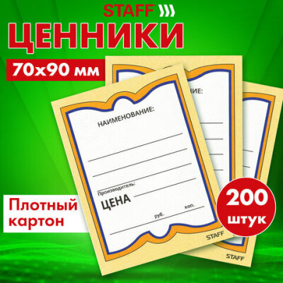 Картонные ценники STAFF наиболее оптимальны для магазинов, торгующих продуктами питания, поскольку картон сохраняет форму при изменении влажности и температуры. Удобные поля позволяют нанести информацию о фирме, наименовании и цене.