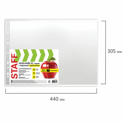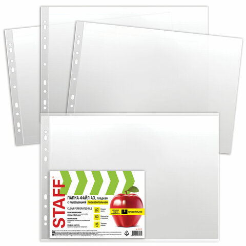Папки-файлы БОЛЬШОГО ФОРМАТА (297х420 мм) А3, ГОРИЗОНТАЛЬНЫЕ, КОМПЛЕКТ 50 шт., 35 мкм, STAFF "Manager", 225770
