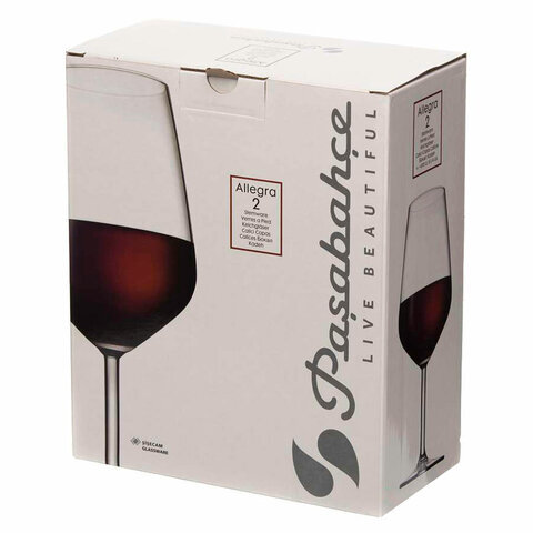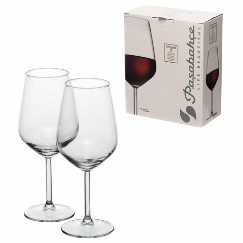Бокал для вина на ножке, 490 мл, СРЕДНИЙ РАЗМЕР, КОМПЛЕКТ 2 штуки, стекло, PASABAHCE "АЛЛЕГРА", фирменная подарочная упаковка, 440065