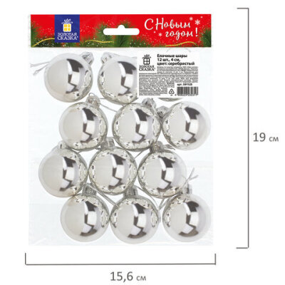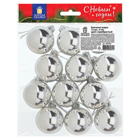 Шары ёлочные 12 шт., 4 см, "Solid Color", пластик, СЕРЕБРИСТЫЕ, глянец, ЗОЛОТАЯ СКАЗКА, 591125