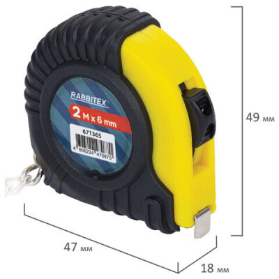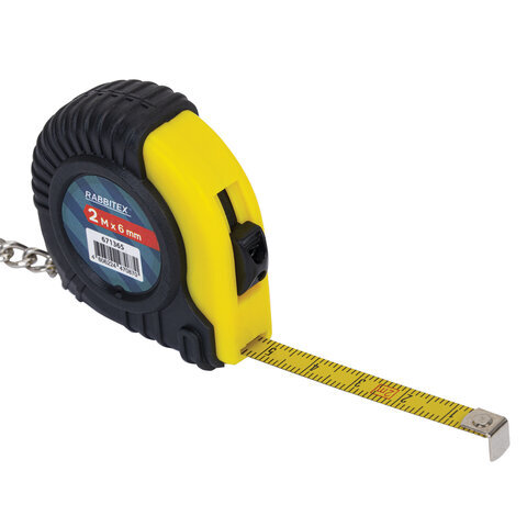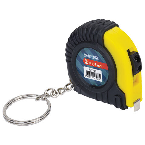 Рулетка-брелок, 2 м х 6 мм, обрезиненный корпус, с фиксатором, RABBITEX (РАББИТЕКС), 671365