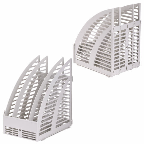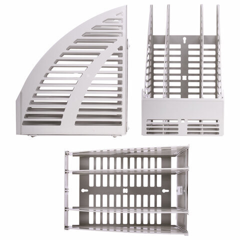 Лоток вертикальный для бумаг STAFF, 245х165х285 мм, 3 отделения, сетчатый, сборный, серый, 237294