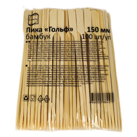 Пики для канапе бамбуковые ГОЛЬФ 15 см, 100 шт., КП, 133045