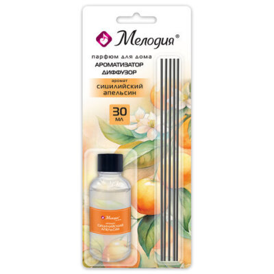 Ароматизатор аромадиффузор с палочками, освежитель 30 мл, МЕЛОДИЯ "Сицилийский апельсин", 609791
