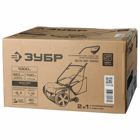 Электрический скарификатор-аэратор ЗУБР МАСТЕР ЗСЭ-32-1000 предназначен для ежедневной сезонной эксплуатации на приусадебных участках.