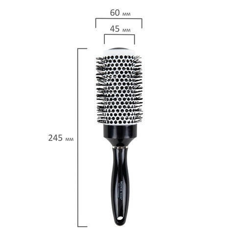 Расческа для укладки волос термобрашинг 24,5х6х4,5 см, круглая, продувная, черная, MONTE VITA (МОНТЕ ВИТА), 457418