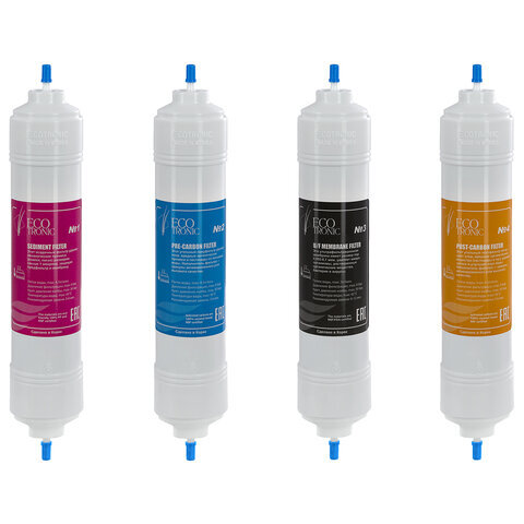Фильтры для пурифайеров 14 дюймов, ресурс до 12 000 л, КОМПЛЕКТ 4 шт., ECOTRONIC, 11749