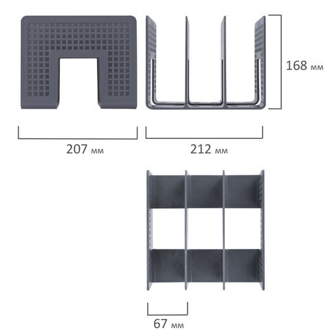 Лоток-сортер для бумаг BRAUBERG "Office-Expert", 3 отделения, 207х212х168 мм, сетчатый серый, 238022