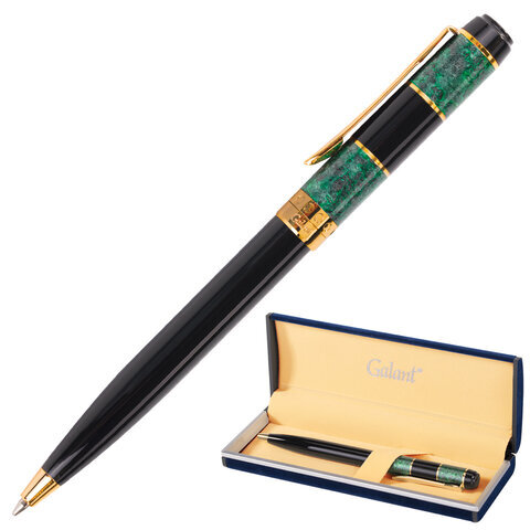 Ручка подарочная шариковая GALANT "Granit Green", корпус черный с темно-зеленым, золотистые детали, пишущий узел 0,7 мм, синяя, 140393