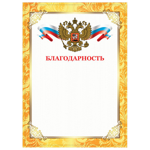 Грамота "Благодарность", А4, плотная мелованная бумага 200 г/м2, для лазерных принтеров, золотая, STAFF, 128899