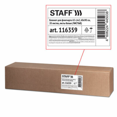 Блокнот для флипчарта 65 г/м2, STAFF 60x90 см, 20 листов, белый (ЧИСТЫЙ), 116359