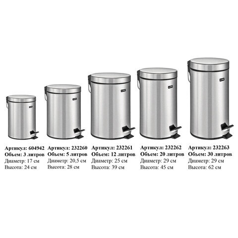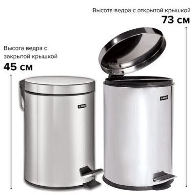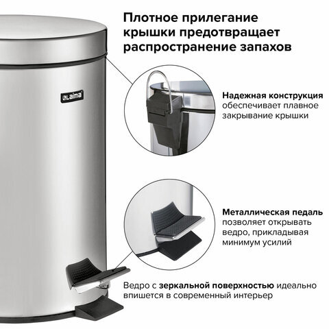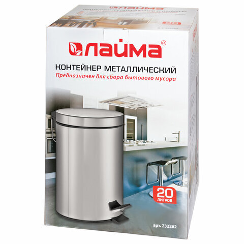 Ведро мусорное с педалью 20 литров "Classic", ЗЕРКАЛЬНОЕ, нержавеющая сталь, со съемным внутренним ведром, LAIMA, 232262