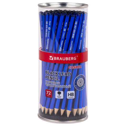 Карандаш чернографитный BRAUBERG "COSMIC", 1 шт., HB, корпус синий, 181766