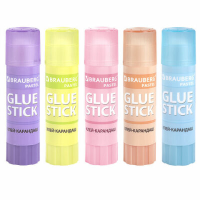 Пастельная линейка клеев-карандашей BRAUBERG PASTEL в корпусах нежных, спокойных оттенков. Подходит для использования в офисе, школе и дома.