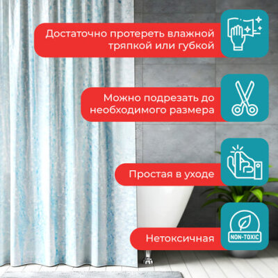 Шторка для ванной EVA, 180х200 см, кольца в комплекте, СИНЯЯ ЛЕДЯНАЯ СВЕЖЕСТЬ, PRIMILA (ПРИМИЛА), 700100