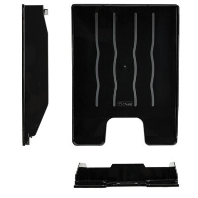 Лоток оригинального дизайна из лёгкого и прочного пластика. Приподнятая фронтальная часть лотка обеспечивает удобное изъятие документов из накопителя. Лотки можно устанавливать друг на друга.