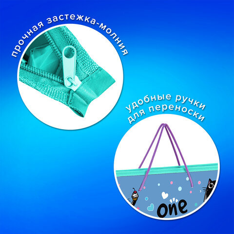 Папка на молнии с ручками ПИФАГОР "Funny cats" защитит учебные пособия и тетради от смятия и повреждений.