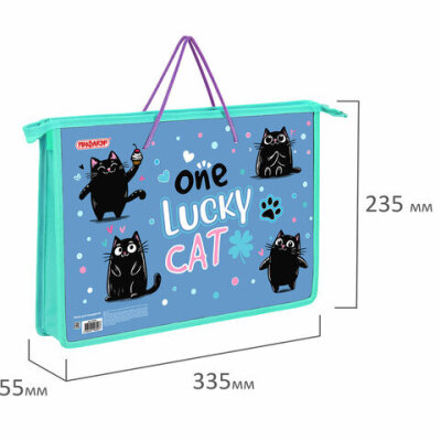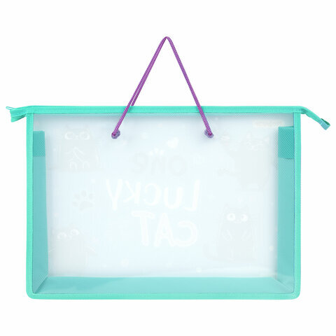 Папка на молнии с ручками ПИФАГОР А4, 1 отделение, пластик, ручки-шнурок, "Funny cats", 273353