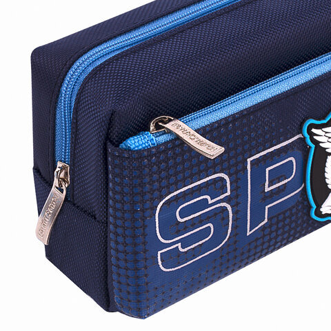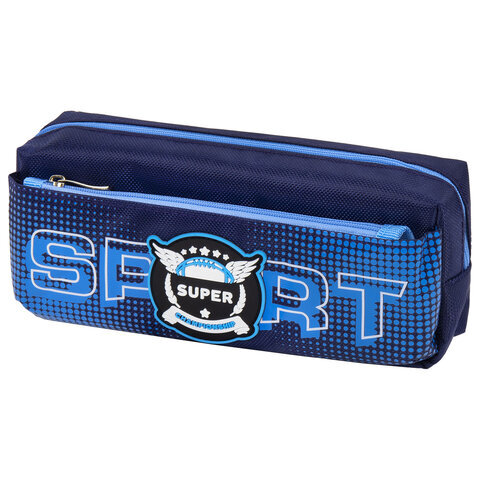 Пенал мягкий ЮНЛАНДИЯ, 2 отделения, полиэстер, "Super", синий, 21х6х9 см, 270277