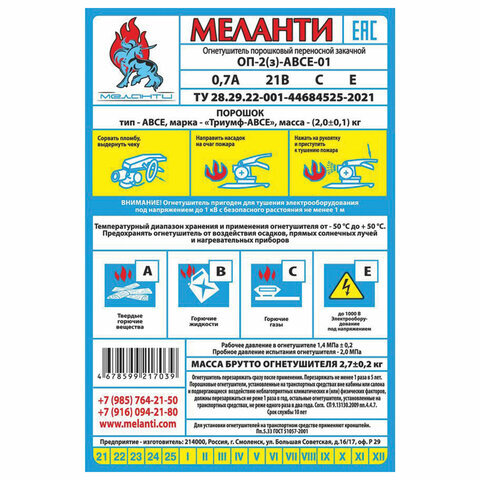 «АЛГОРИТМ»| Тип огнетушащего вещества | порошок |