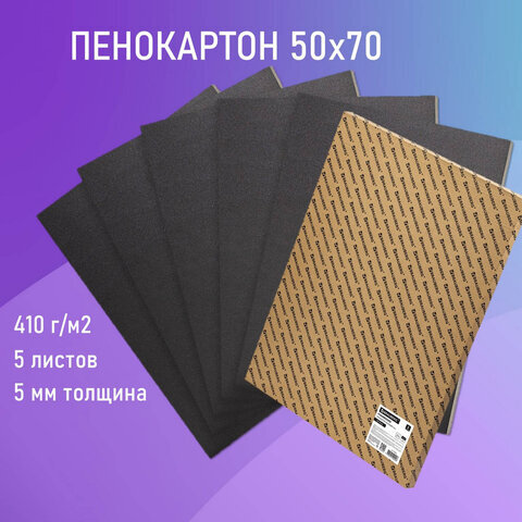 Пенокартон матовый, 50х70 см, толщина 5 мм, черный, КОМПЛЕКТ 5 листов, BRAUBERG, 112472
