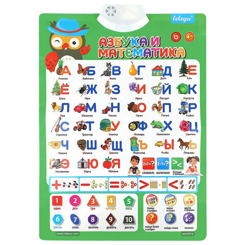 Плакат со звуком "Азбука, звуки и счет" на батарейках, 41х58 см, 3 батарейки ААА не в комплекте, РК, ЗП-9505, ЗП-2699