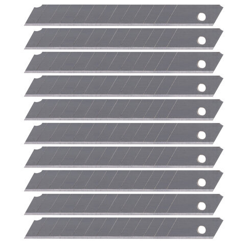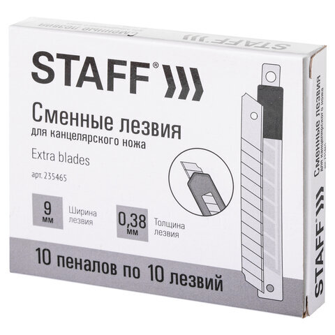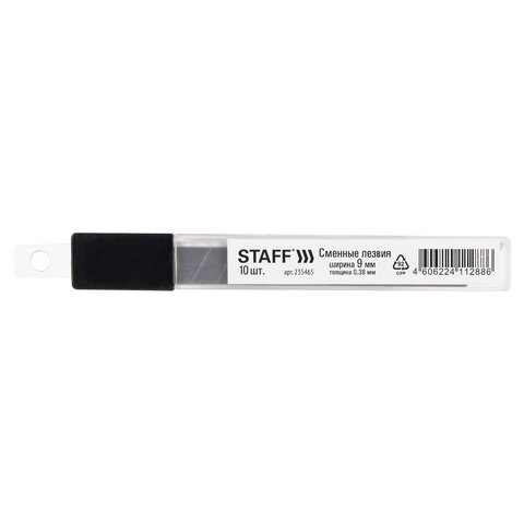 Лезвия для ножей 9 мм КОМПЛЕКТ 10 ШТ., толщина лезвия 0,38 мм, в пластиковом пенале, STAFF "Basic", 235465