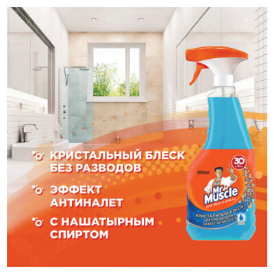 Средство для мытья стекол и зеркал 530 мл, МИСТЕР МУСКУЛ "После дождя", распылитель
