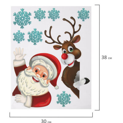 Наклейка для окон двусторонняя МНОГОРАЗОВАЯ 30х38 см "Дед Мороз и олень", ЗОЛОТАЯ СКАЗКА, 591179