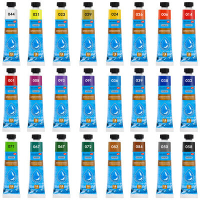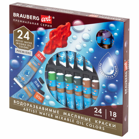 Краски масляные ВОДОРАЗБАВИМЫЕ художественные, 24 цвета по 18 мл в тубах, BRAUBERG ART PREMIERE, 192291