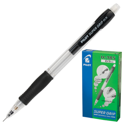 Карандаш механический 0,5 мм, PILOT H-185 "Super Grip", ластик, резиновый грип, корпус черный, H-185-SL, Н-185
