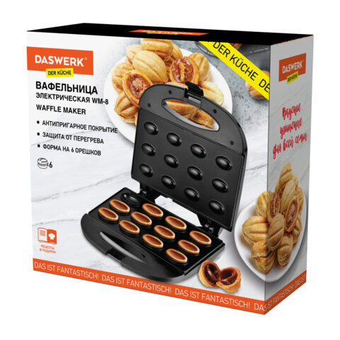 Электровафельница-орешница антипригарная, 6 орешков, 750 Вт, DASWERK (ДАСВЕРК), WM-8, 455655